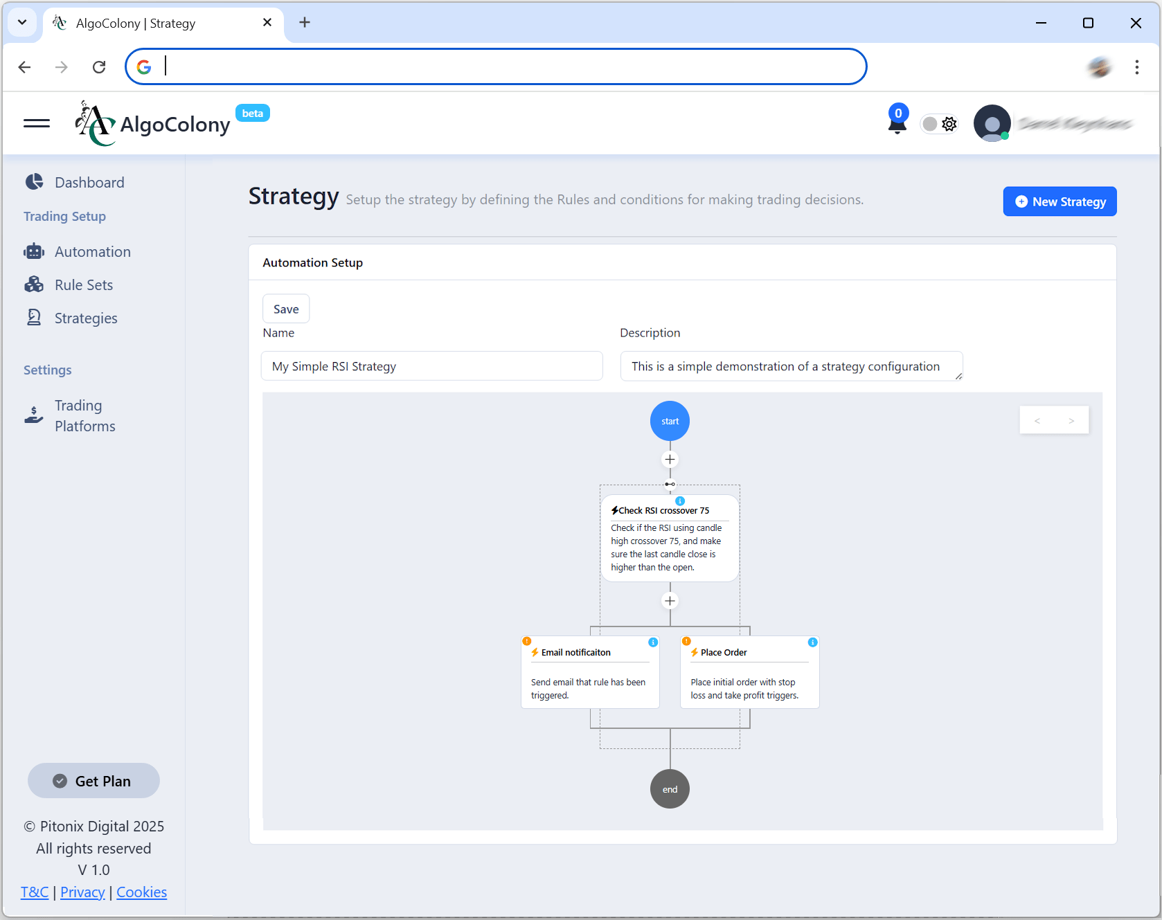 AlgoColony is a no-code algorithmic trading platform that lets you build, customize, and automate trading bots using simple rule-based strategies. No coding, no Pine Script — just drag, drop, and deploy.